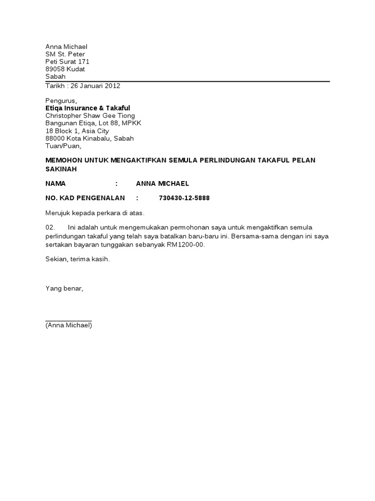 Surat suri syarikat t228 tadika tahap tahun takaful taksiran. Contoh surat rasmi tuntutan insurans srasmi contoh kumpulan. Polisi insurans atau perlindungan takaful yang telah diambil boleh dibatalkan.